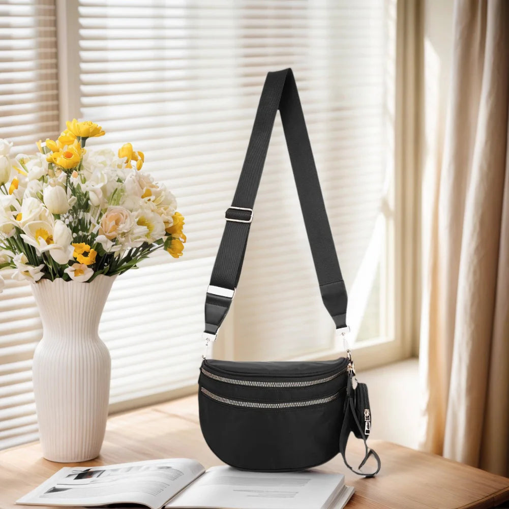 Nylon Spacious Fanny Packs with Adjustable and Removable Strap Solid Sling Bag Sling Shoulder Bag Wallets Purses for Women