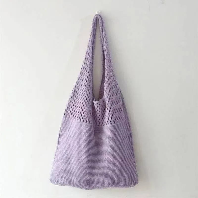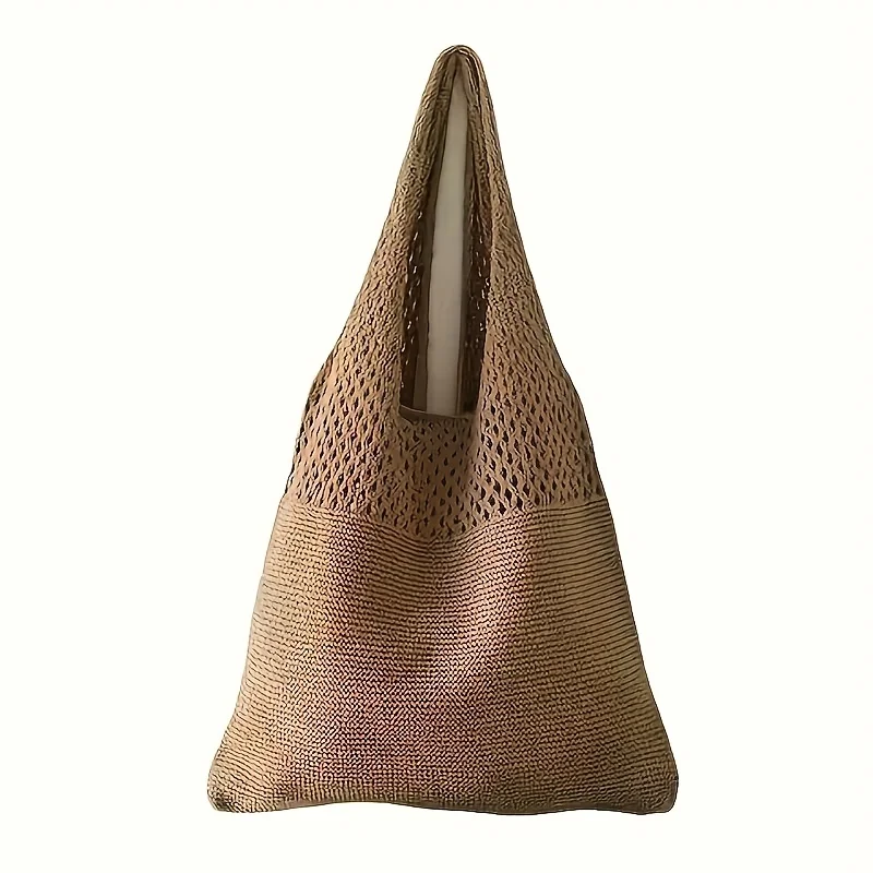 New Trend Women's Bag Crochet Handbag Retro Knitted Braid Solid Color Hollow Black Khaki Top-handle Tote Bag Shopper