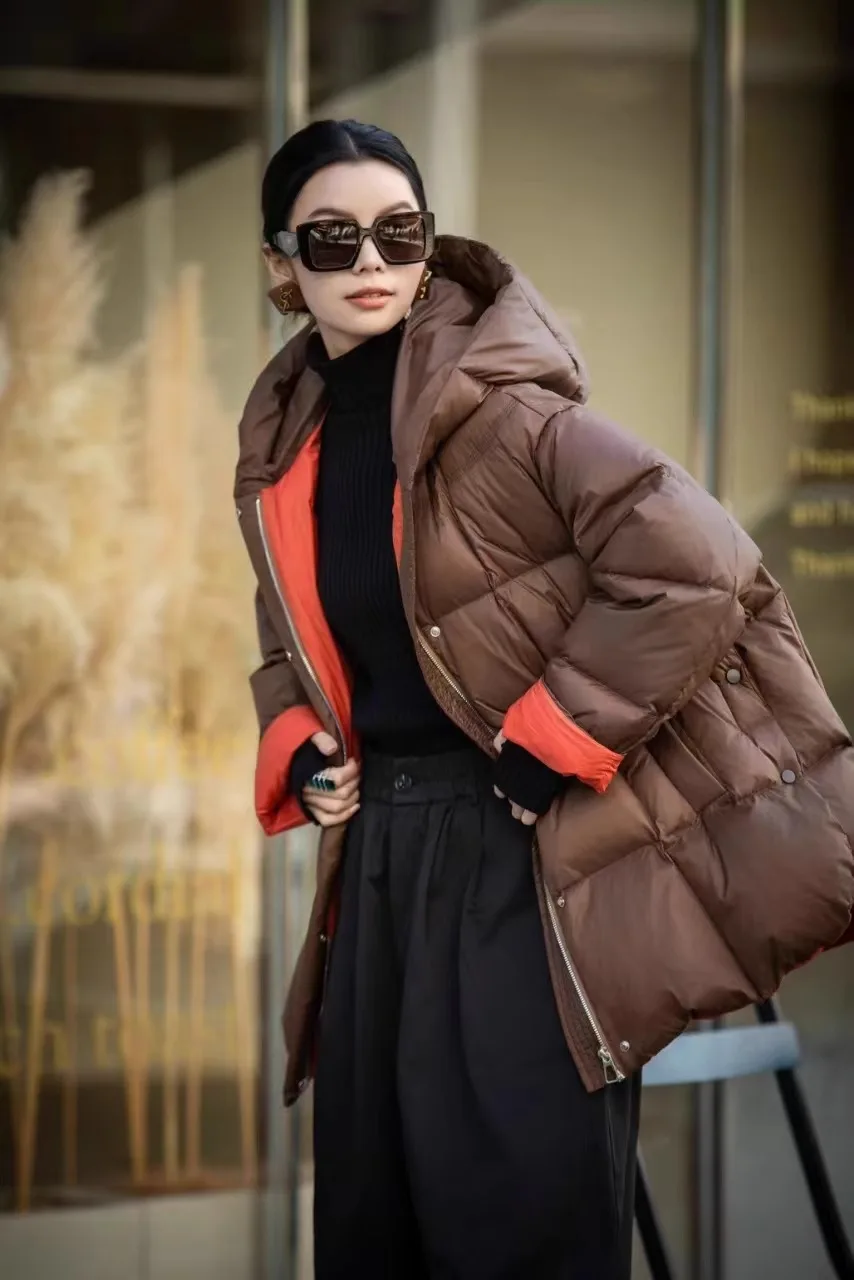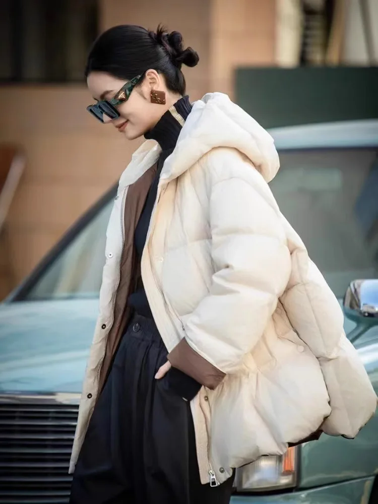 Casual loose hooded White Duck Down Jacket